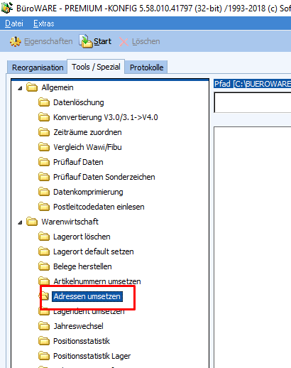 Um die Adressnummern umzusetzen, starten sie innerhalb des Datenbankassistenten auf Karteikarte „Tools/Spezial“ die Funktion „Adressen umsetzen“