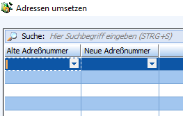 In der Umsetzungsdatei muss pro Zeile, wahlweise TAB- oder kommagetrennt, die alte und neue Adressnummer stehen.
