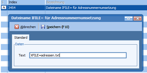 Einstellungen->Parameter/interne Texte-> 3454, Dateiname IFILE= für Adressnummernumsetzung