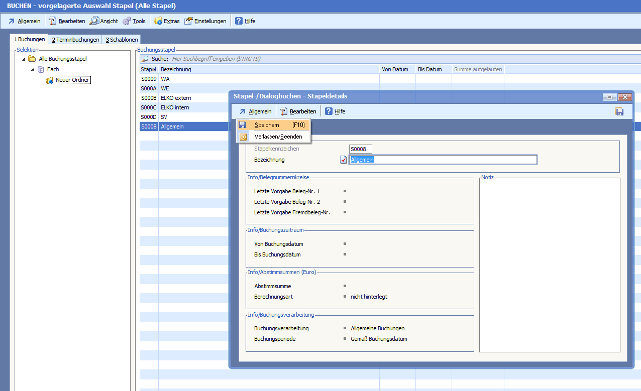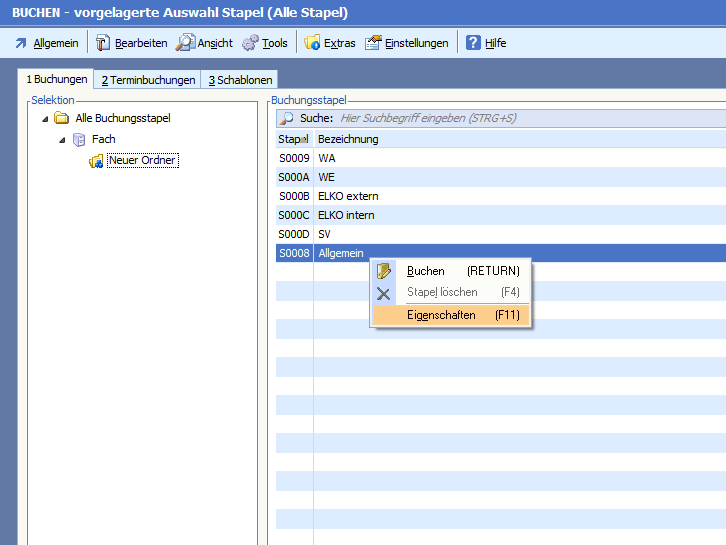 Stapeleigenschaften mit rechter Maustaste am Stapel aufrufen (<F11>)