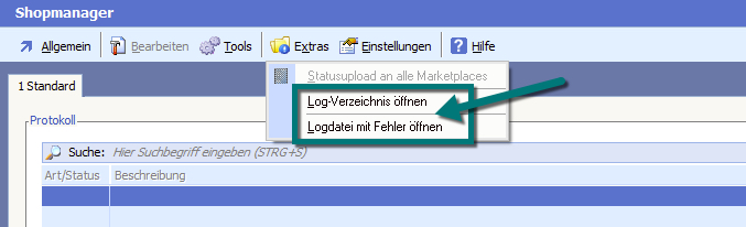Das Verzeichnis können Sie direkt aus dem Shopmanager heraus aufrufen: