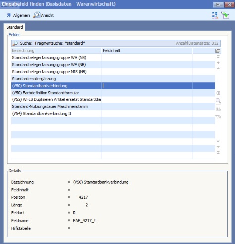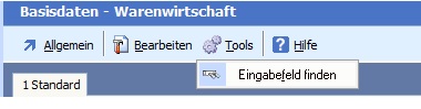In den Basisdaten über das Menüband unter Tools die Funktion „Eingabefeld finden“ aufrufen: