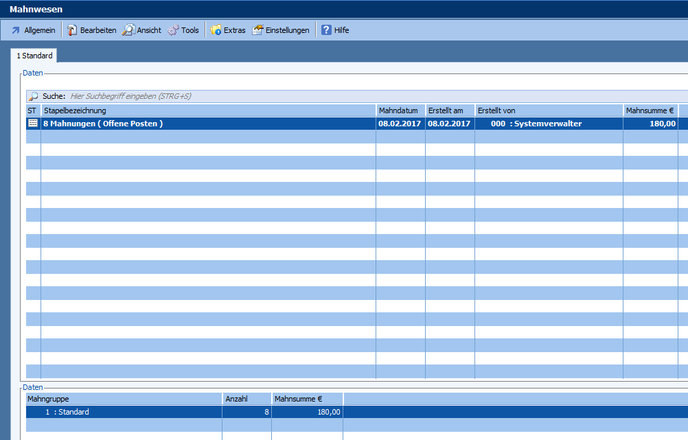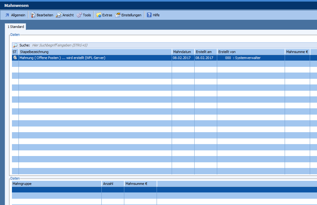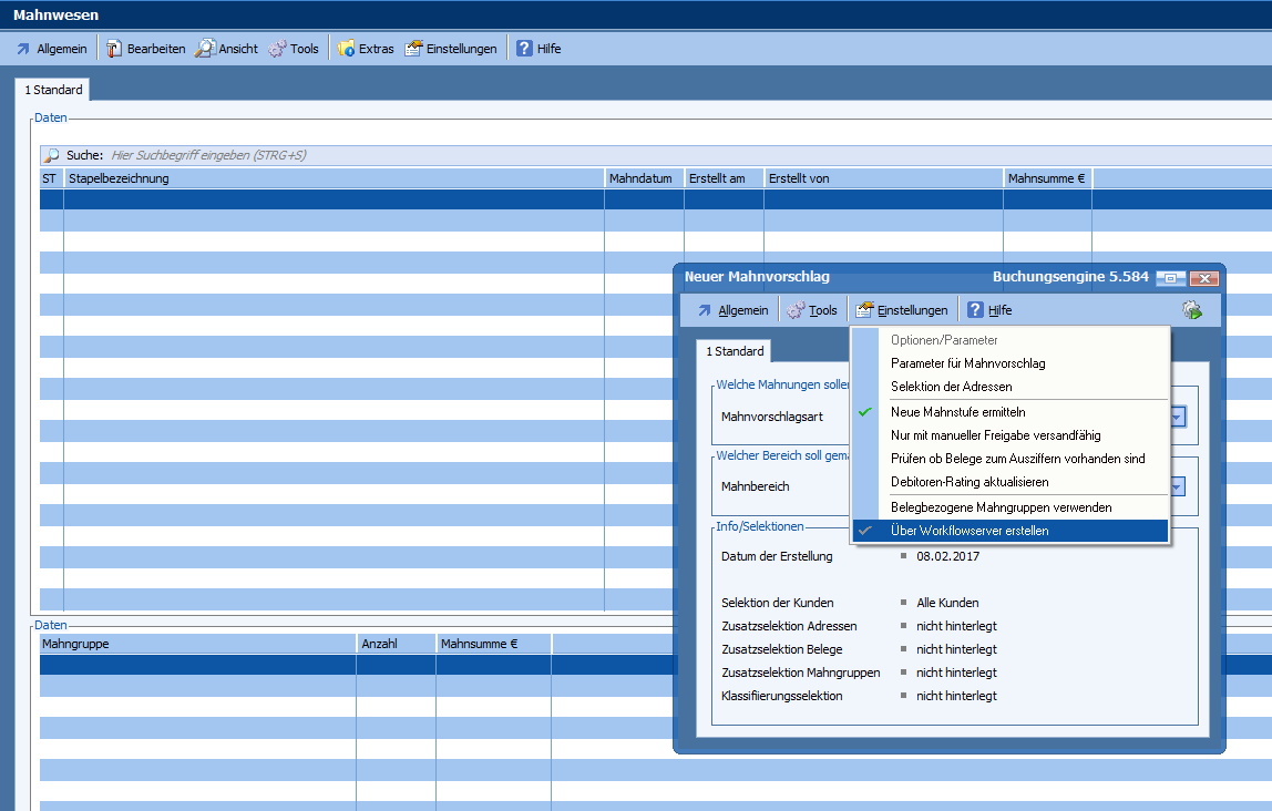 Mahnvorschlag über Workflowserver starten – Mahnwesen ab 5.58