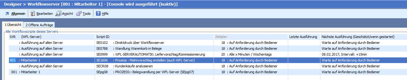Im Script SE0141 muss in der Tabelle beim Script SE1606 der Workflowserver Bediener eingetragen werden.