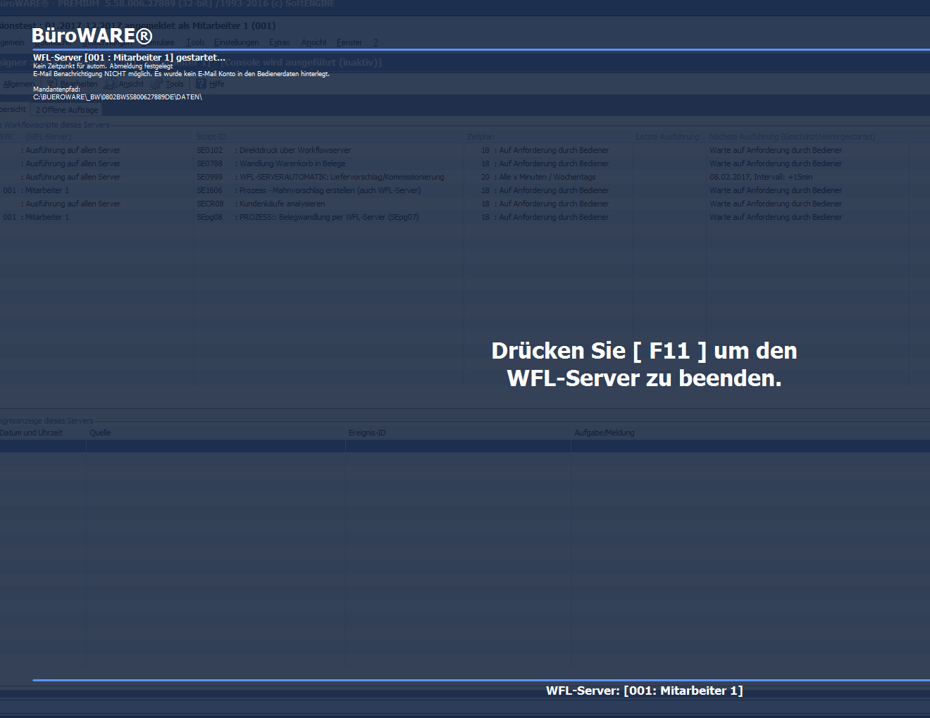 Der Workflowserver muss gestartet und das Script SE1606 dort hinterlegt sein.