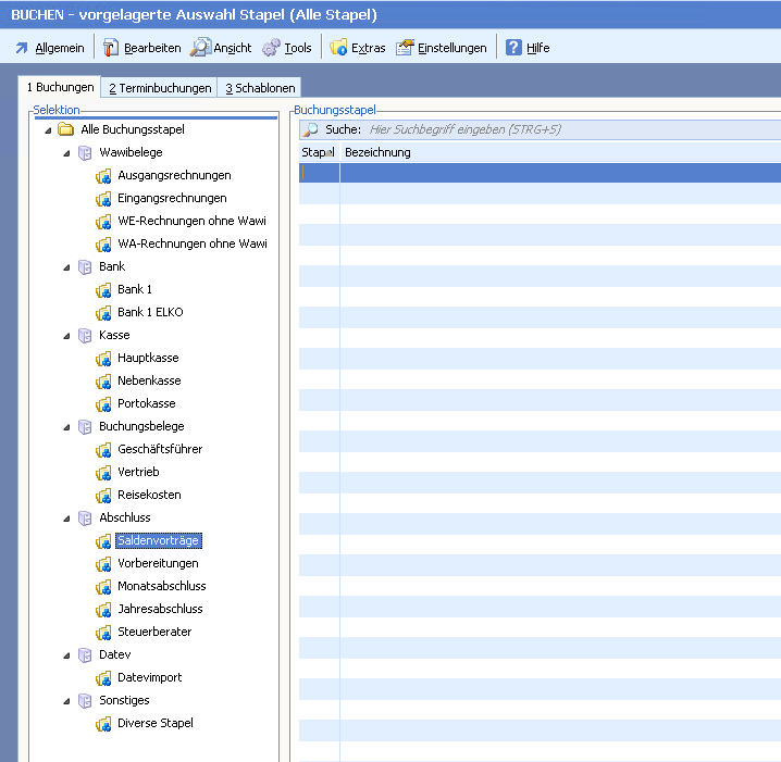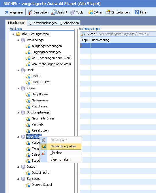 Mittels der Taste „F3“ können Sie innerhalb des Buchungsordners einen neuen Stapel anlegen.