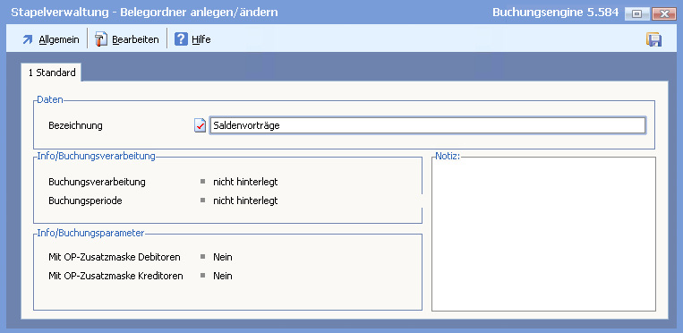 Für den Vortrag muss ein separater Stapel angelegt werden. Wenn Sie mit Belegordnern arbeiten, sollten Sie zunächst einen Ordner dafür anlegen.