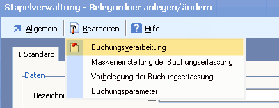 Im Menü „Bearbeiten“ finden Sie den Eintrag „Buchungsverarbeitung“.