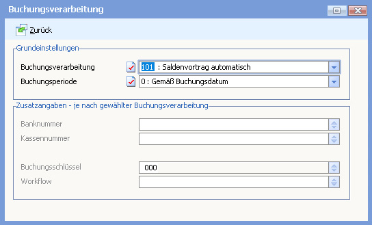 Tragen Sie hier die Verarbeitungsart „Saldenvortrag automatisch“ ein.