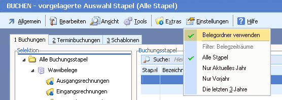 Sollten Sie den Stapel ohne Belegordner angelegen, müssen Sie die Einstellung noch nachholen.