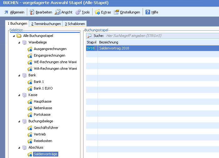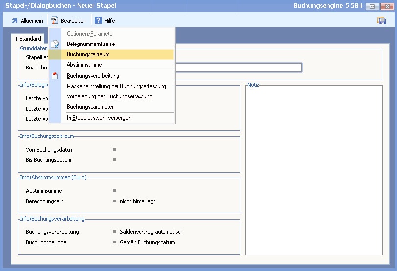 Um nur die Vorträge eines Jahres in einem Stapel zu haben, empfiehlt sich die Angabe eines Buchungszeitraumes.