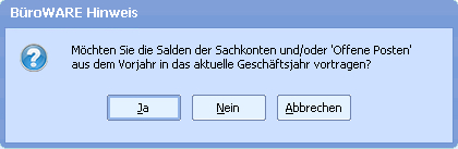 Wenn diese Voraussetzungen gegeben sind, können Sie den Saldenvortrag starten. Die nochmalige Abfrage bestätigen Sie dann mit „Ja“.