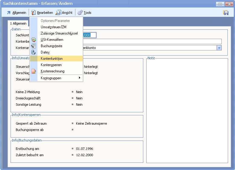 Diese Einstellungen finden Sie im Menü „Bearbeiten“ unter dem Eintrag „Kontenfunktion“.