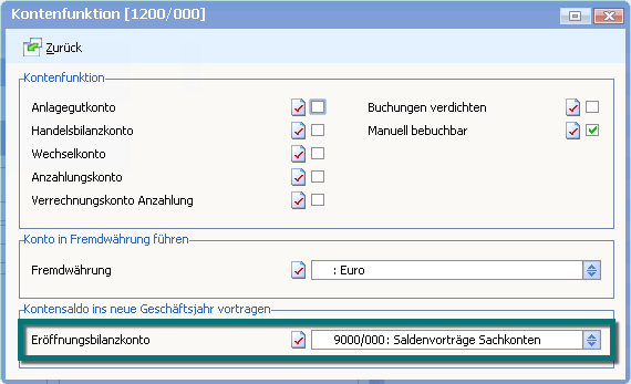 Vorgetragen werden die Konten, bei denen ein Eröffnungsbilanzkonto hinterlegt ist. Im Standard ist das bei allen Bilanzkonten so.