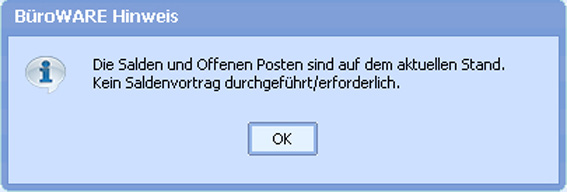 Startet man den Saldenvortrag und es gibt keine Änderungen, wird eine entsprechende Nachricht angezeigt.