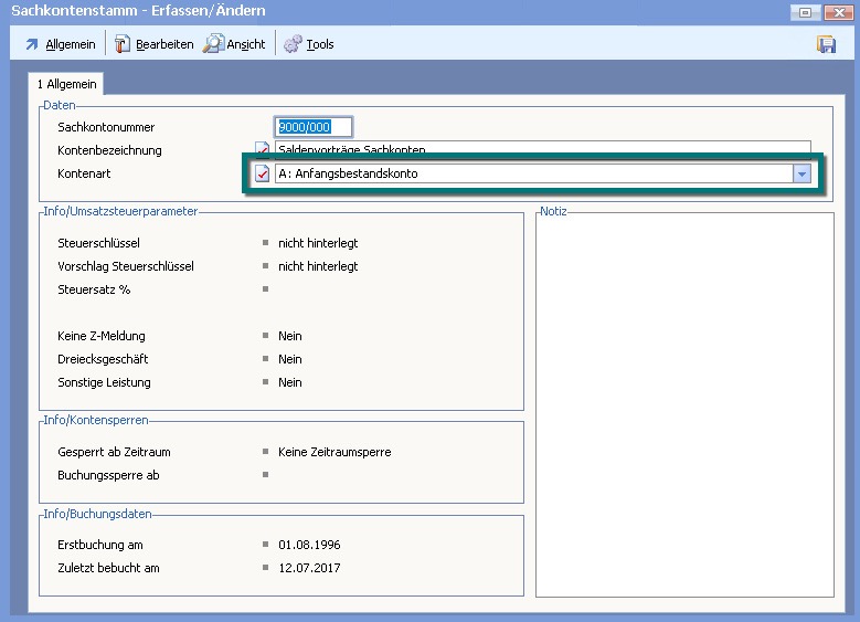 In diesem Zusammenhang ist nochmals zu beachten, welche Sachkonten überhaupt vorgetragen werden. Diese Vorgaben erfolgen im Sachkonto.