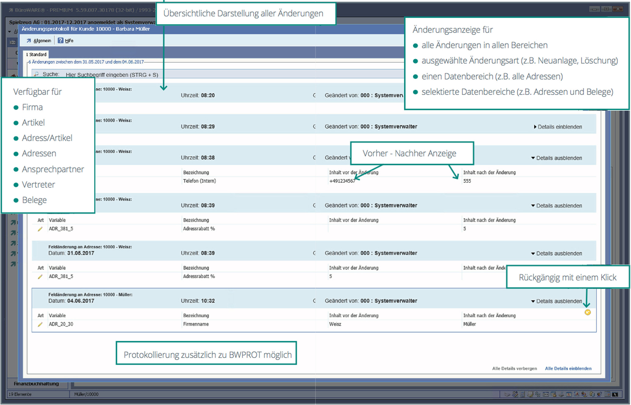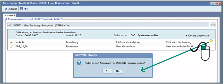 Die Vorgabe für die SoftENGINE-Entwicklung bestand darin, in einer Datenbank übersichtlich alle Änderungen und wer diese ausgeführt hat zu protokollieren. Im Bedarfsfall sollte die Rücknahme einer Veränderung mit nur einem Klick möglich sein.
