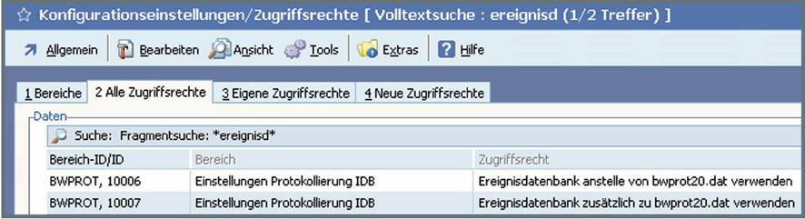 Neue Zugriffsrechte steuern das Verhalten der Ereignisdatenbank.
