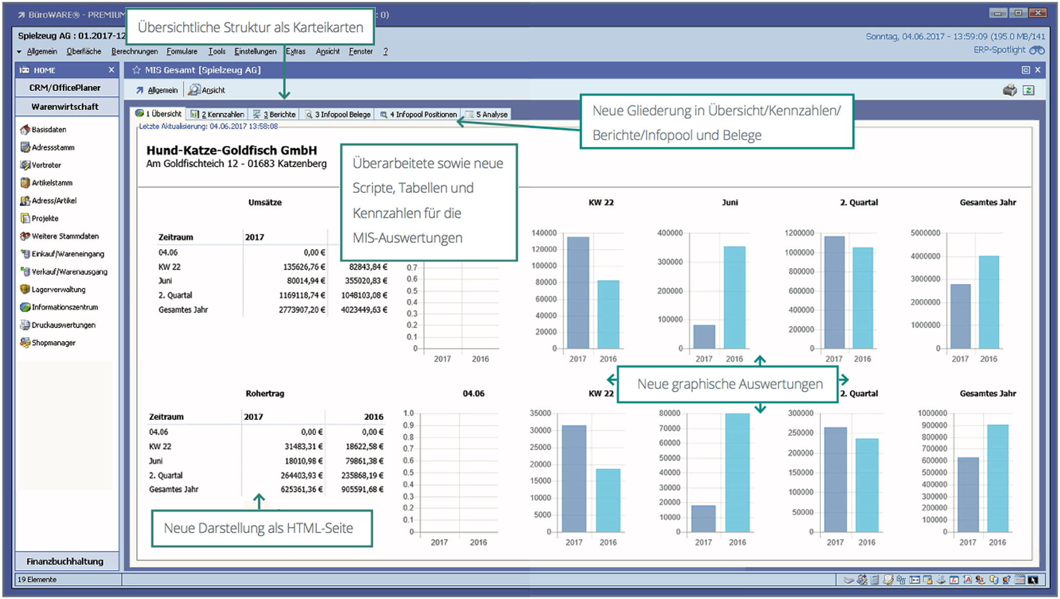 Der Aufbau des MIS wurde gründlich überarbeitet. Es stehen neue graphische Auswertungen zur Verfügung, neue Kennzahlen und Übersichten.