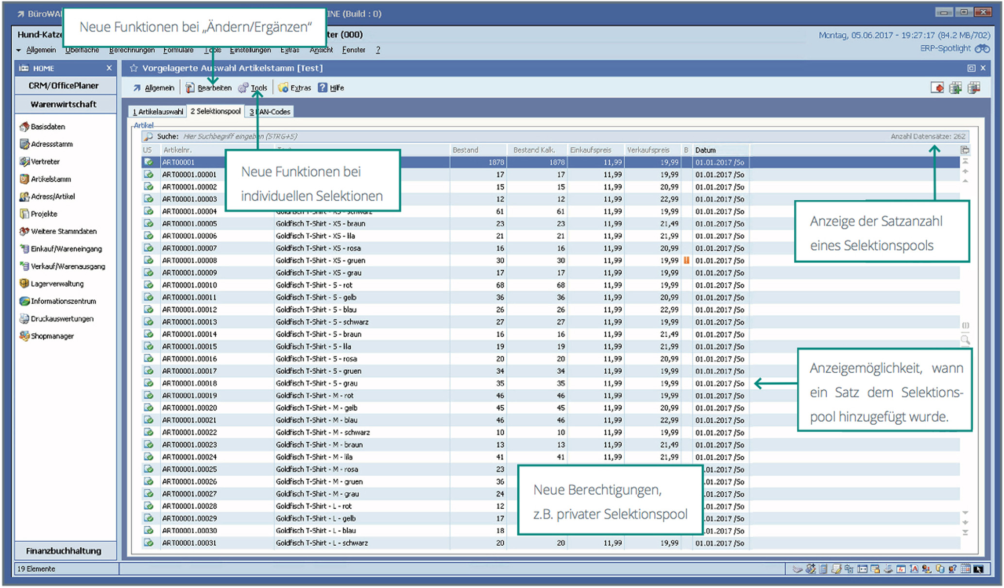 Der Selektionspool hat sich seit Einführung der Version 5.5 der BüroWARE zu einem Werkzeug entwickelt, dass aus der täglichen Arbeit nicht mehr wegzudenken ist. Das SoftENGINE-Entwicklerteam hat über 30 Veränderungen vorgenommen und neue Funktionen hinzugefügt, die von den Partnern und Anwendern vorgeschlagen wurden.