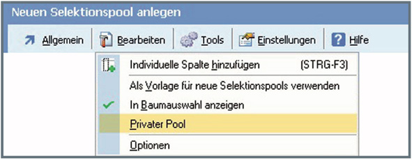- Ein Selektionspool kann jetzt als privat gekennzeichnet werden und steht somit nur dem Ersteller zur Verfügung.