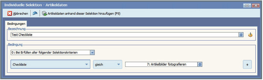 - Bei einer individuellen Selektion kann nach Checklisteneinträgen gesucht werden.