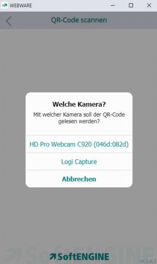 Neu ist die Auswahl der Kamera mit welcher der QR-Code gelesen werden soll, falls mehrere Kameras im System erkannt werden.